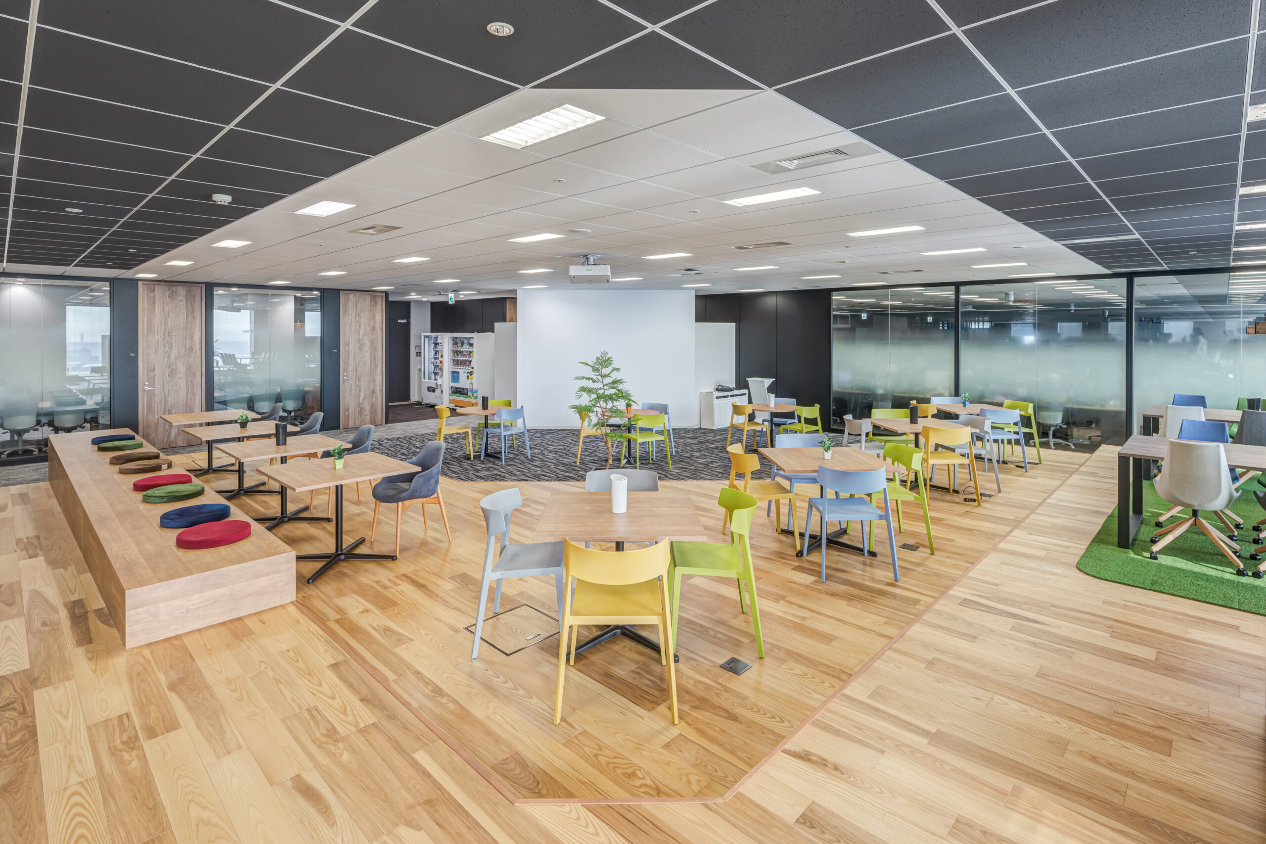 クライアントからは「広々としたリフレッシュスペースで様々なイベントを実施出来てよい空間となった」「窓際に打ち合わせスペースを設けた事ですぐに打ち合わせを行えるようになり、生産性向上につながった」と評価を頂きました。